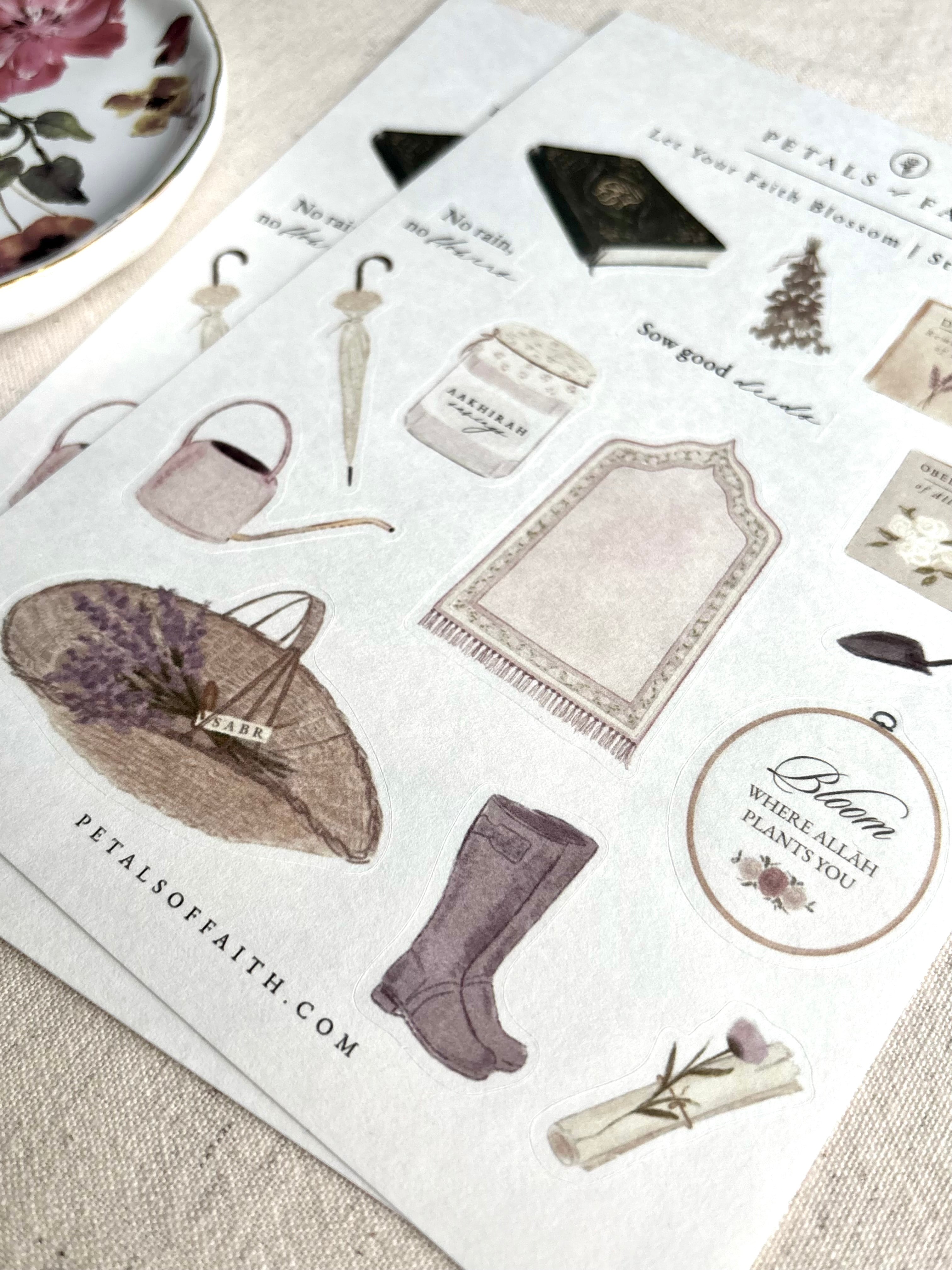 Let Your Faith Blossom | Islamic Sticker Sheet Garden theme A5 | Sabr, Bloom, No Rain, No Flowers designs