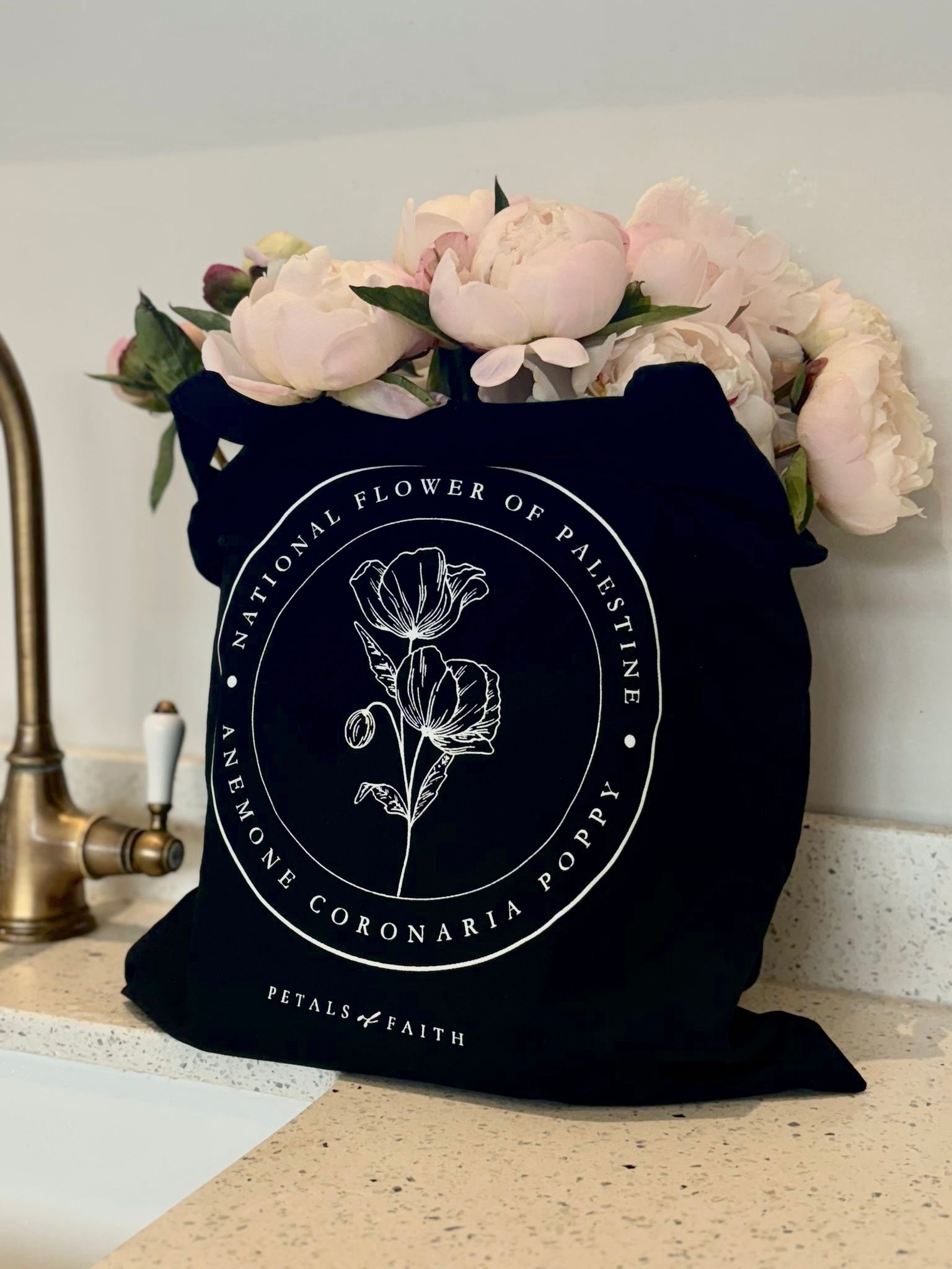 Black Tote Bag with Palestine National Flower – 100% Profits to Charity